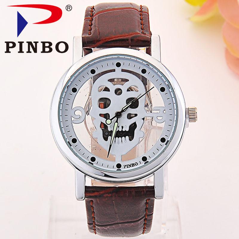 Relojes hombre 2017 Nouveau célèbre marque de luxe mode Creux Crâne hommes Montre casual robe montres hommes En Cuir quartz montre-bracele