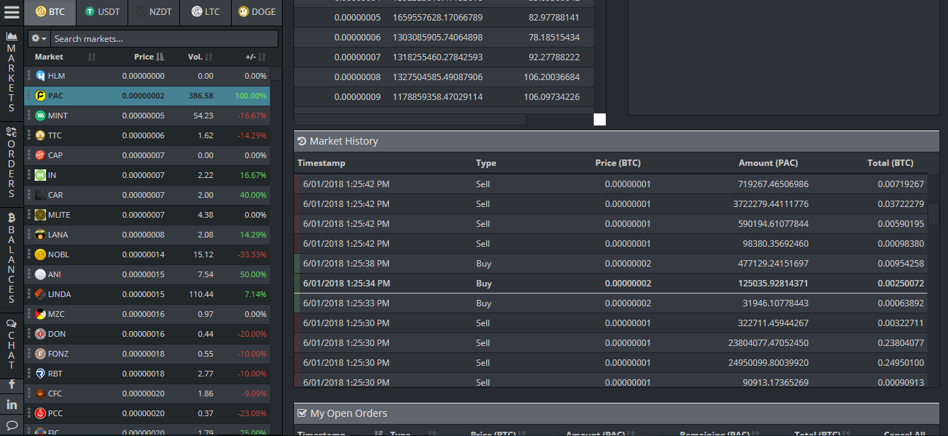 I've been observing this coin since last night and I was quite amazed how active the market was even up until the moment I'm writing this post. In just a few hours, a wall of 200+ BTC was bought for PAC coin. Here's a glimpse of what I'm talking about: