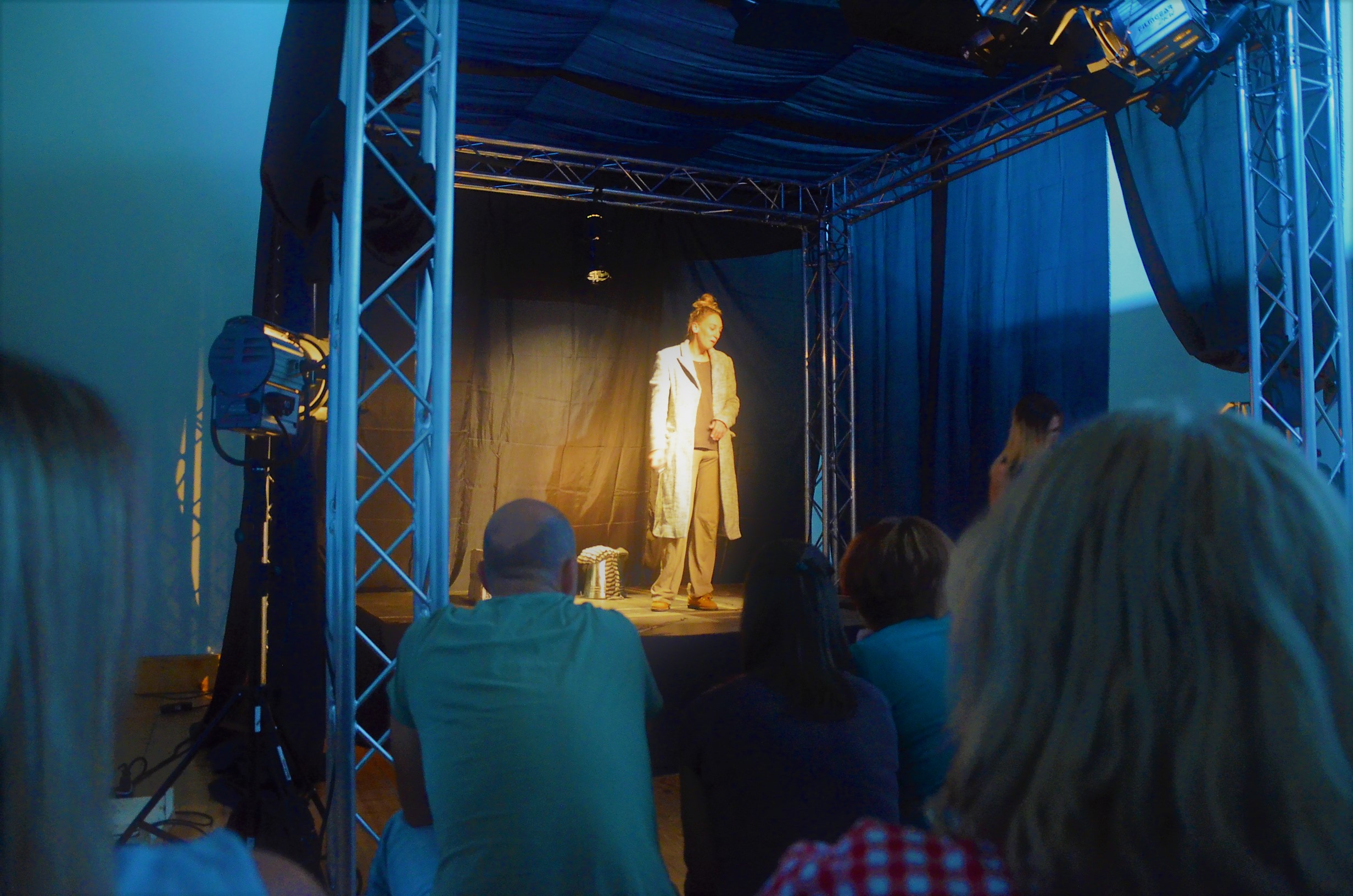 The ones in front are, somehow, too exposed. The specific thing, in monologues, is that the actor or actress has no partner for the so necessary eye contact. They talk to you, with you, towards you. They lock their eyes onto a spectator, and, according to the strength of that spectator, they hang in there for a while.