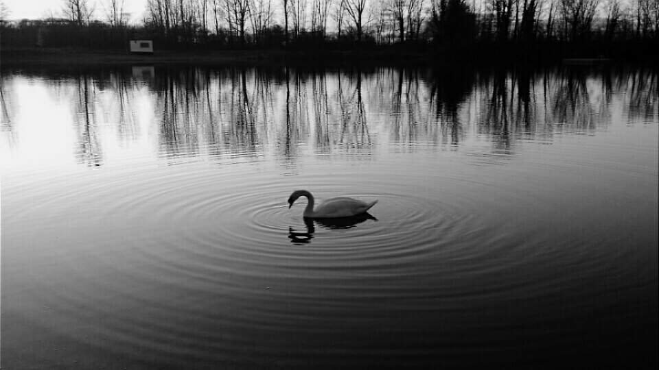 I went for a little walk along the lake last evening. The lake lay there like a mirror. Peaceful. Nothing moved. Just silence, an incredible silence. Only the swan moved gracefully and almost majestically on the water.