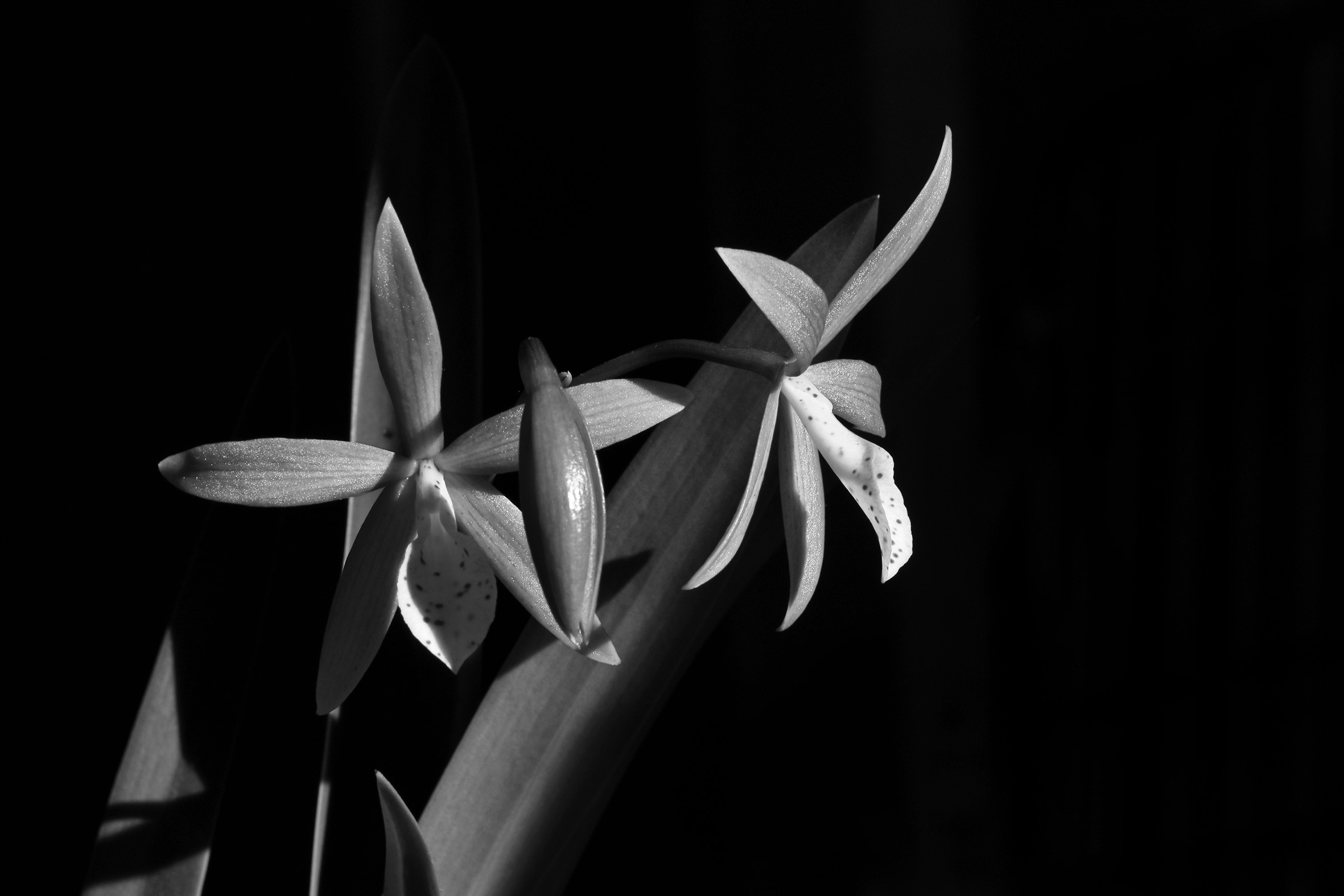 | This is gonna be a fast post as I simply do not have any inspiration to write. This is one of my orchids Procatavola Golden Peacock. Originally the flowers are orange and yellow with very dark spots. Today it is my entry for #Monomad, so no colour allowed. Hope you like it. | To będzie mega szybki post, bo mam zero natchnienia. To cudo zwie się Procatavola Golden Peacock i jest jednym z moich storczyków. W rzeczywistoście kwaty są pomarańczowo-żółte z ciemnymi kropkai. Dzisiaj bierze udział w #Monomad, wiec jest pozbawiony kolorow. Mma nadzieję, że się podoba. |