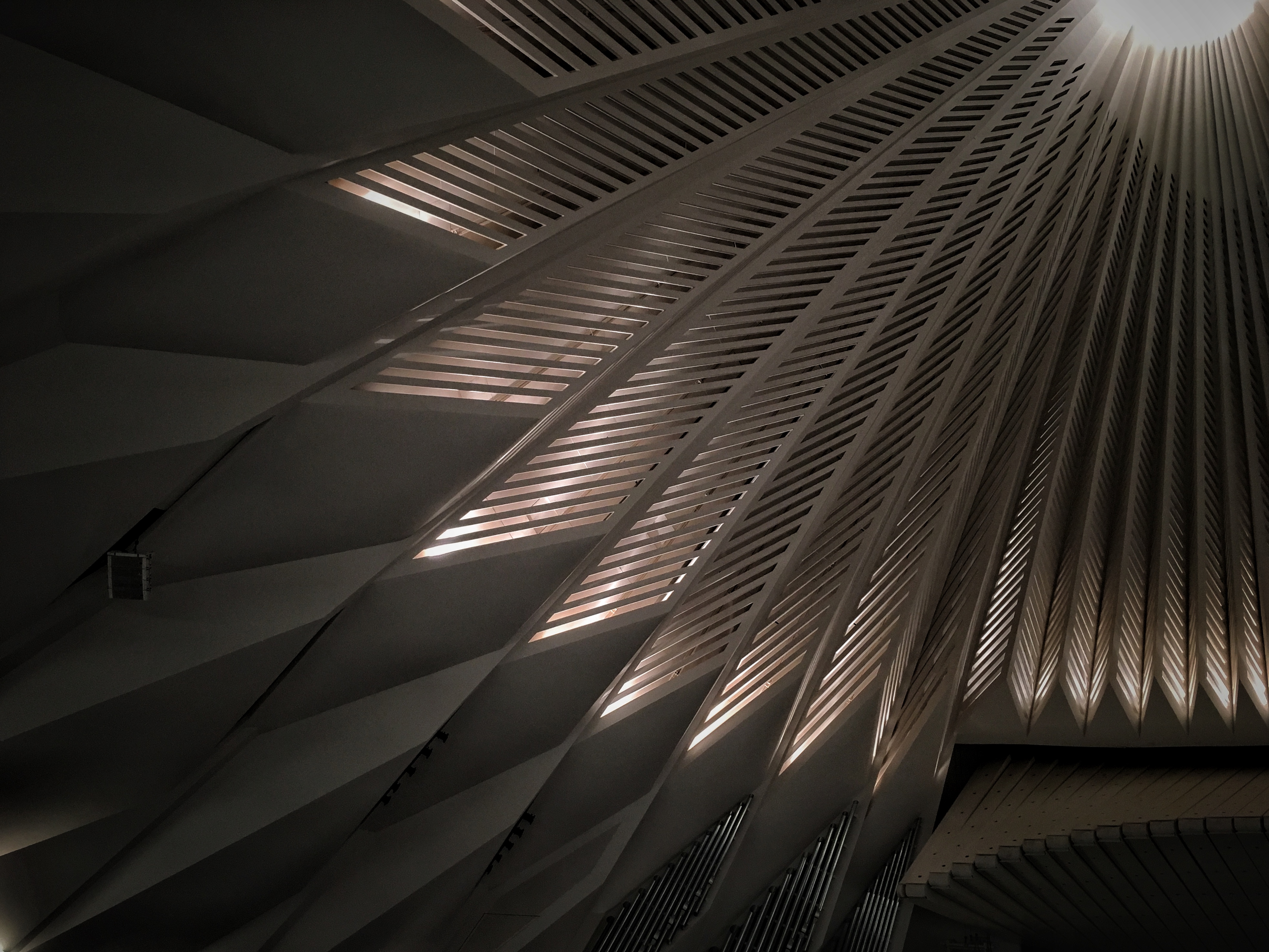 Hola amigo, es una obra bellisima, es de esperarse que internamente la acústica y la iluminación sean espectaculares, a mi parecer es ingenioso hacer la ventilación cruzada hacia arriba y demostrar que la luz no viaja en linea recta.