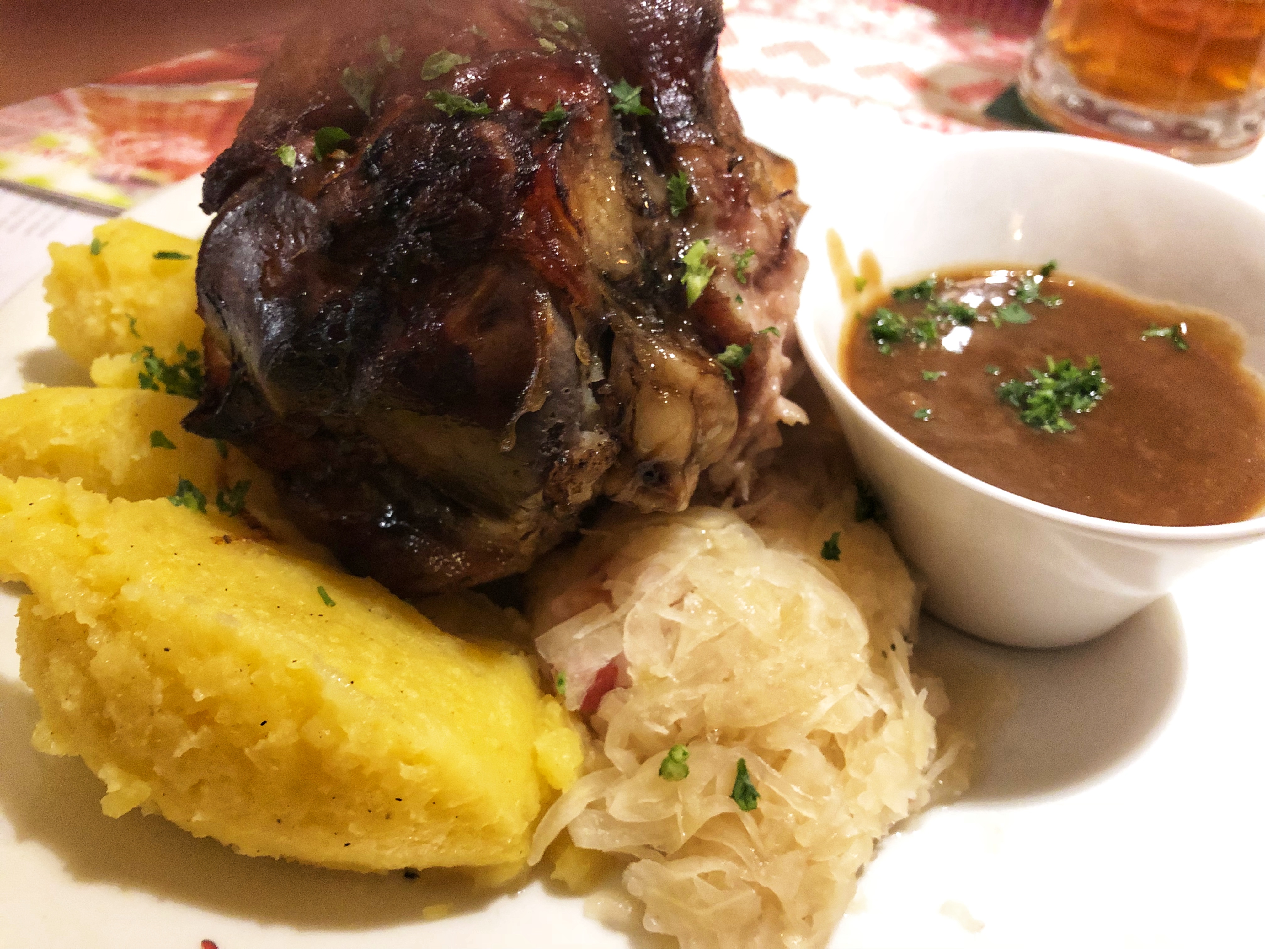 So we ordered in the sweet alp restaurant delicious Schnitzel with fried potatoes, knuckle with sauerkraut and fried fish, these have the day perfectly rounded.
