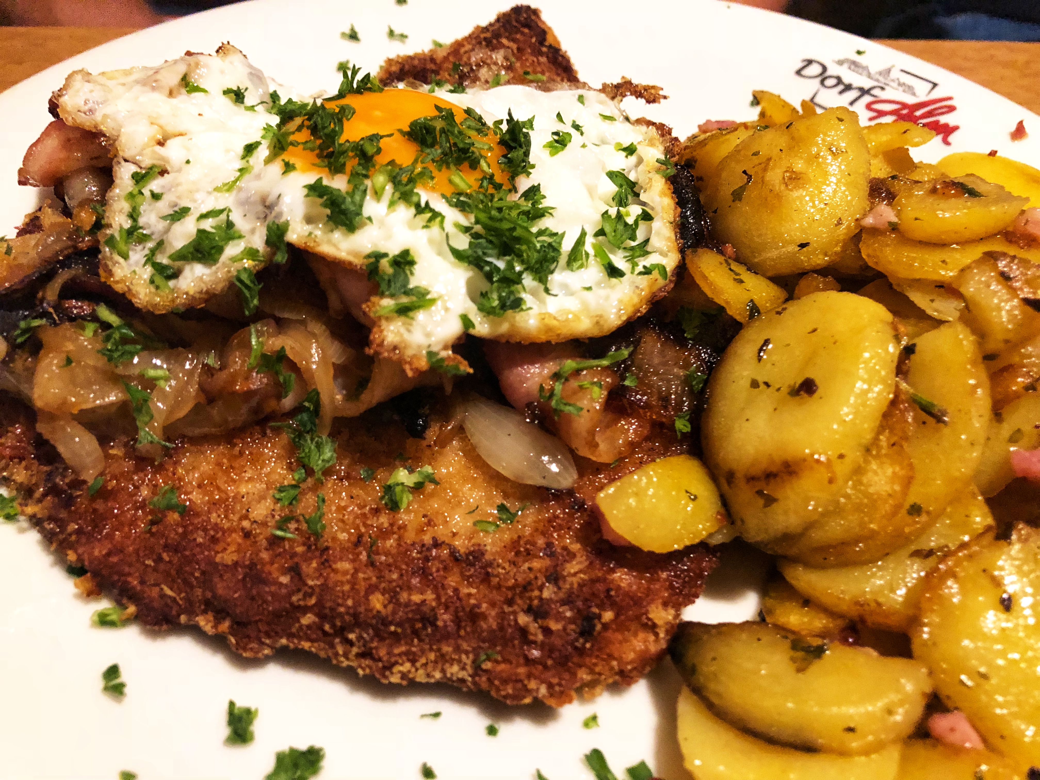 Also bestellten wir in der schnuckeligen Dorfalm Restaurant leckeres Schnitzel mit Bratkartoffeln, Haxe mit Sauerkraut und Backfisch, diese haben den Tag perfekt abgerundet.