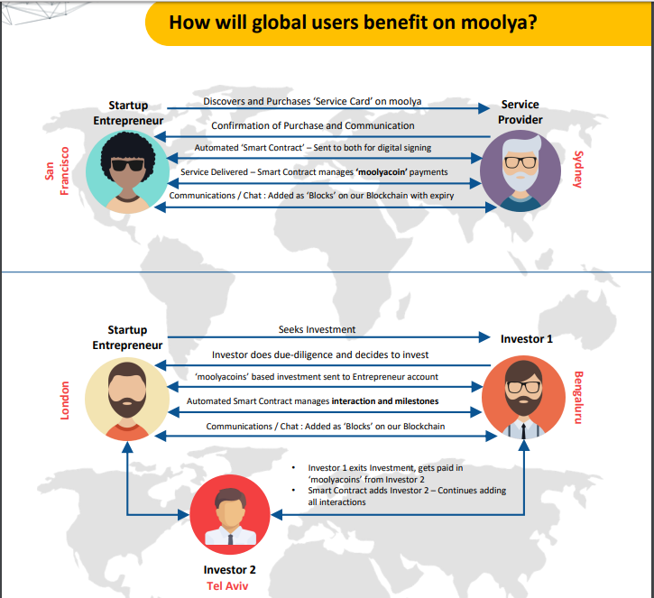Moolya.global은 생태계 공동체에 요구되는 양방향 네트워크, 시장 및 서비스 플랫폼의 절정 인 세계 최초의 '글로벌'글로벌 포괄적 글로벌 시동 생태계 '입니다. 쏘다. 여기에는 조직, 아이디어, 신생 기업, 투자자, 회사, 서비스 제공 업체 및 기타 참가자 등 6 개의 중요한 커뮤니티가 포함됩니다.Moolya는 클러스터, 장 및 장, 디지털 오피스, 서비스 카드, 표현, 비즈니스 프로세스 및 워크 플로에 대해 오랜 시간 테스트 된 개념을 사용하여 시스템의 오프라인 모델을 시뮬레이션합니다. 에코 부츠.