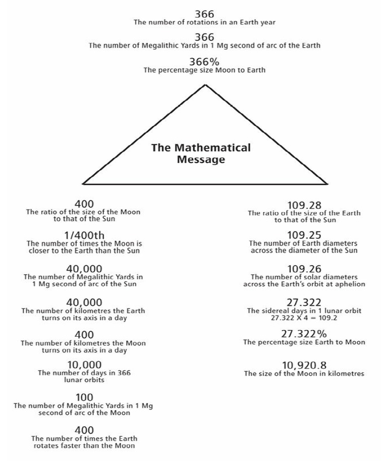 Do I have to mention all the mathematical 'coincidences' mentioned in "Who built the Moon" book? What are the odds all those numbers coming together exactly? Let be honest..it's not coincidence obviously!