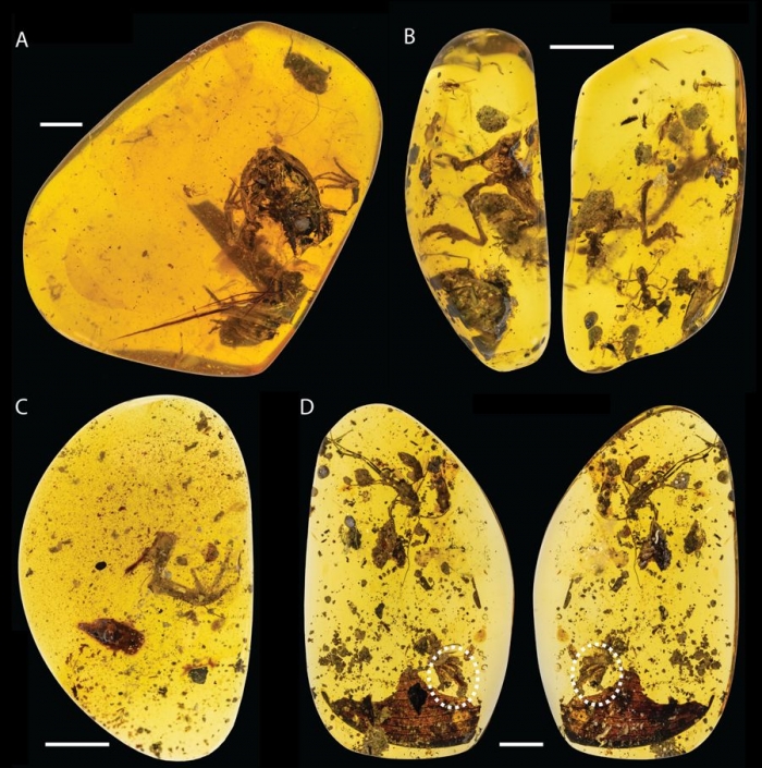 사이언티픽 리포트에 실린 논문에 따르면, 공룡 시대에 불과 2cm 크기의 작은 개구리가 때끈끈한 나무 진액에 갖혔다. 이 번에 미얀마 카친주에서 발견된 4개의 호박은 백악기 시절 개구리가 열대우림에 살았다는 증거다. 호박속에는 물속 연체동물도 발견됐는데, 이는 개구리가 습기 있는 열대의 민물 호수 근처에서 살았다는 것을 말해준다.