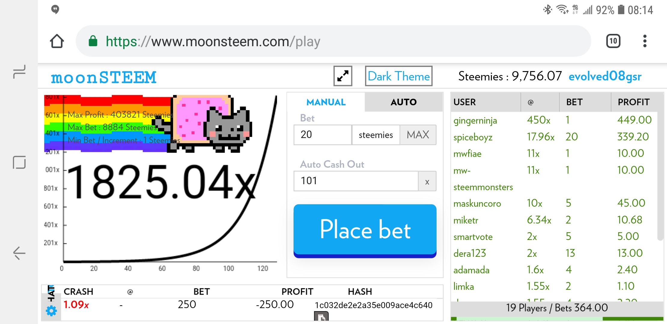 Even though it's not all Huge Wins for everyone all of the time, it's still a ton of fun to try to Moon! Even with smaller bets :)
