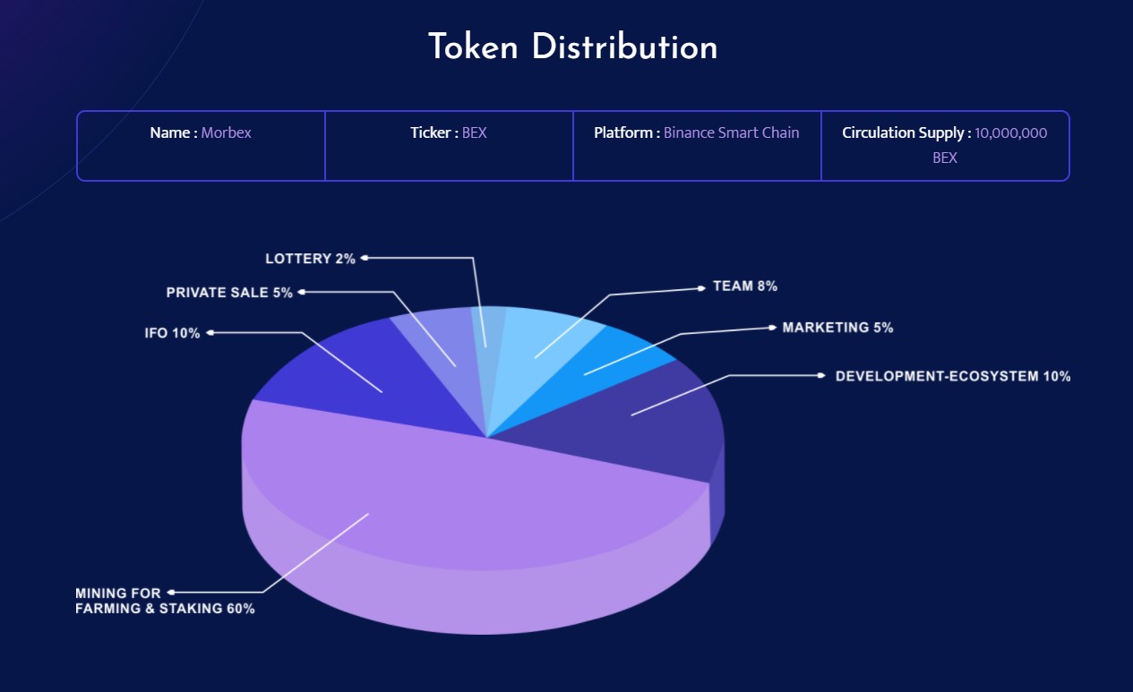 Regarding the BEX token, which was issued by the Morbex project, we can say that this token is also based on the Binance Smart Chain network and a total of 10 million tokens have been issued, of which: