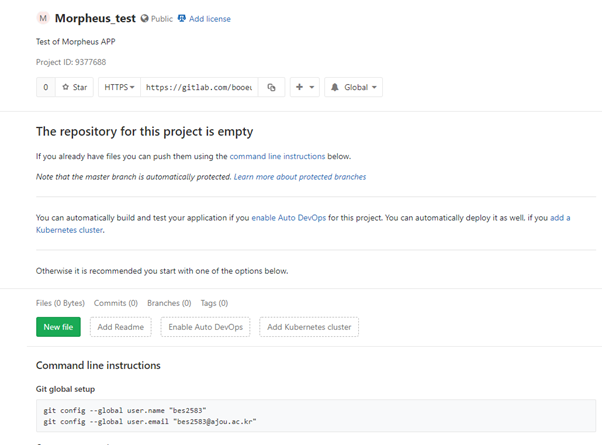 Token Vesting 예제를 클릭하시고 나면 Gitlab에 다음과 같은 프로젝트가 생성된 것을 볼 수 있습니다.