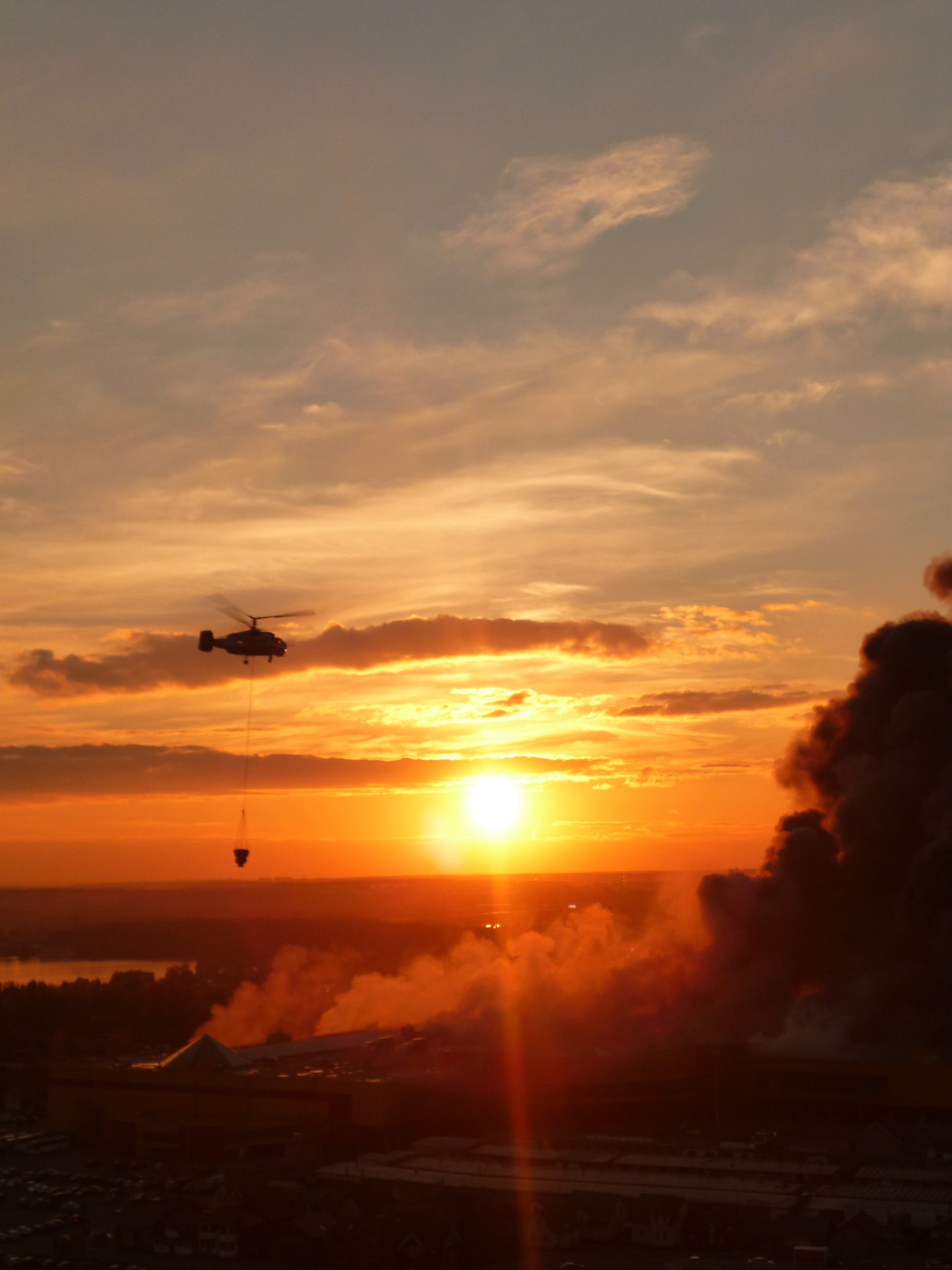 Helicopters with water flew right into the very heat and tried to put out the fire.