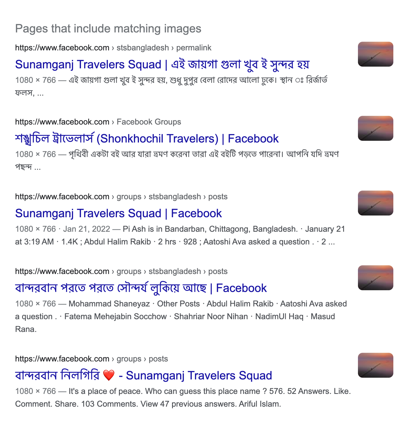 Due to lack of time I have only been able to check one of the images he uploads and the facebook pages where the same photo is.