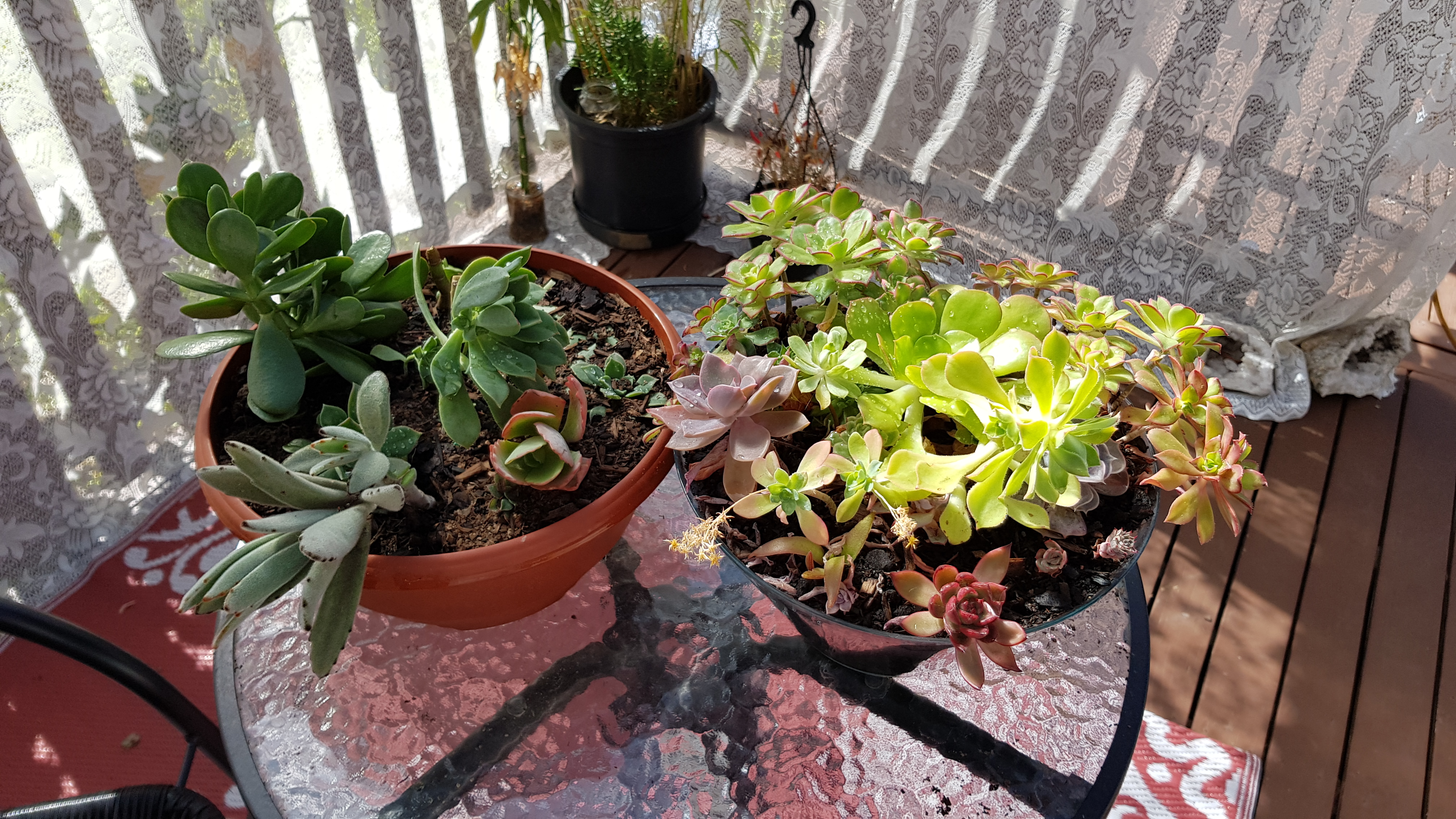 The succulents are amazingly hardy. Well most of them anyway. I'm terrible with watering plants and these get watered about once a month.