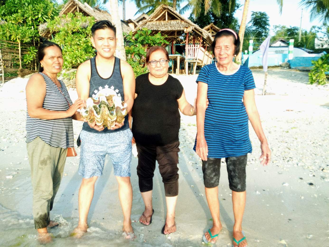 As we arrived at my mother's place, her cousins gave us this present! It's a giant clam to be eaten raw dressed with vinegar and spices. It is a remarkable delicacy for tropic islanders.