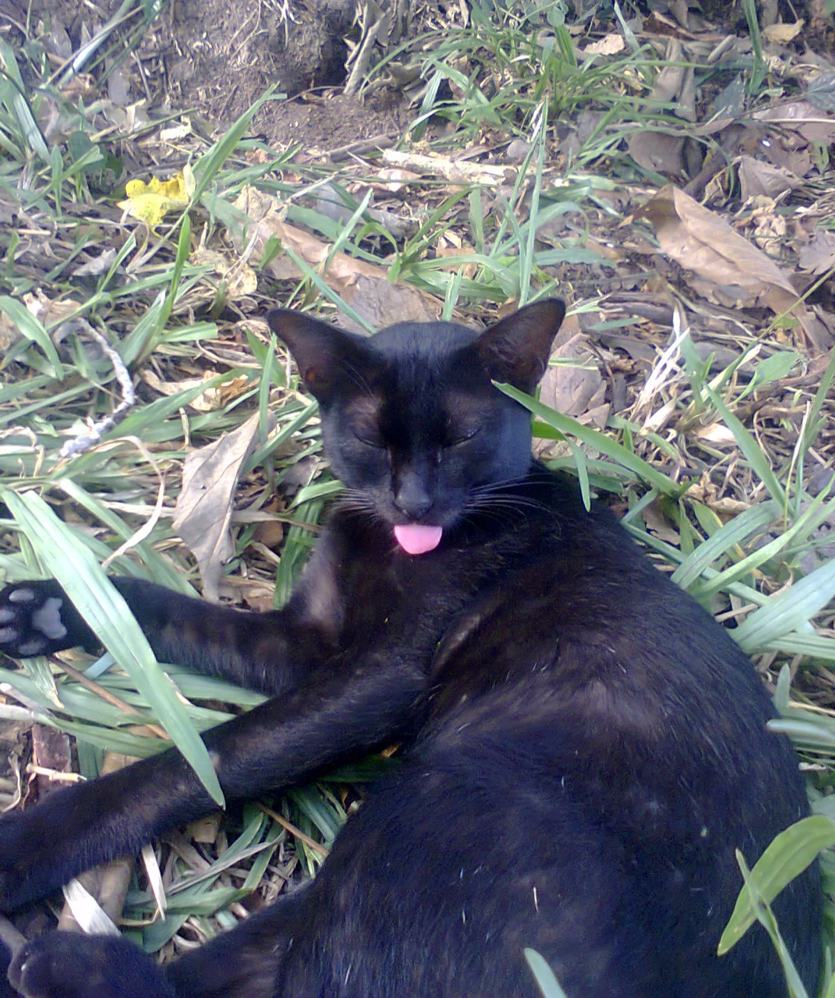 Saat saya bersilaturrahmi kerumah teman, saya heran melihat seekor kucing hitam yang sedang tidur-tiduran di rerumputan dibawah pohon yang rindang. Memang ditempat kucing tersebut istirahat hawanya terasa adem walaupun ditengah cuaca panasnya matahari. Yang mengherankan saya adalah disaat kucing tersebut tertidur, lidahnya selalu menjulur keluar mulut. Seolah-olah bagaikan sedang mengejek yang lainnya. Bagi saya ini baru pertama kali melihat kucing tidur menjulurkan lidahnya.