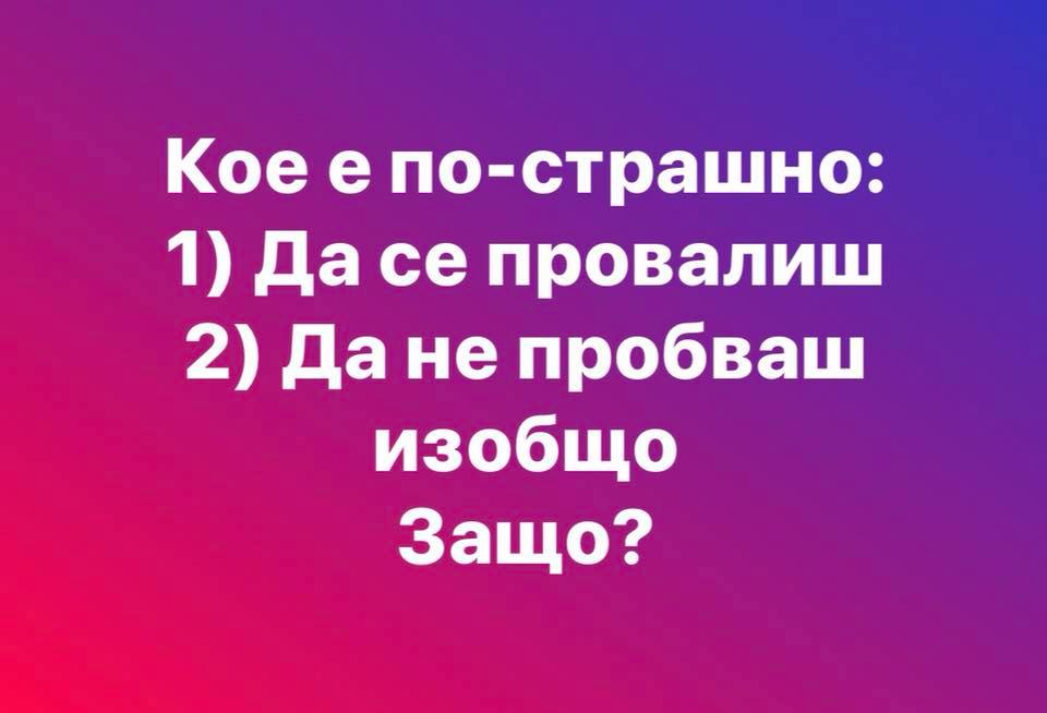 Винаги пробвам иначе бих се измъчвала цял живот с въпроса Защо не пробвах🙂