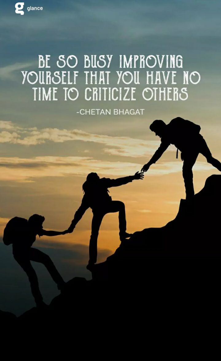 BE SO BUSY IMPROVINGtoufiqsoudagar (46)in #motivational • 4 years ago BE SO BUSY IMPROVING YOURSELF THAT YOU HAVE NO TIME TO CRITICIZE OTHERS. -CHETAN BHAGAT #thoughts #picture #inspired #r2cornell