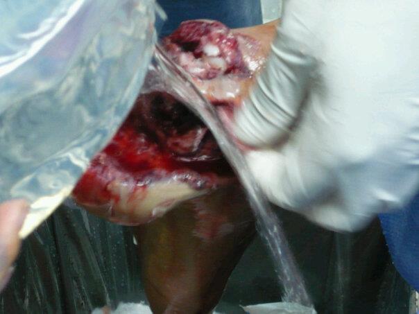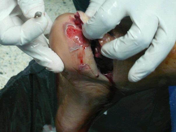 Lamentablemente al paciente se le realizó amputación de pie, en vista de pérdida ósea masiva e imposibilidad de reconstrucción.