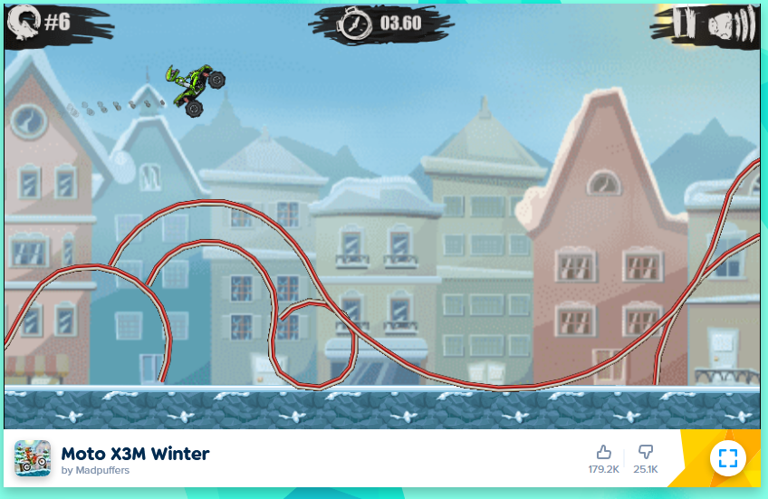 On this occasion I want to tell you about a game I found on the internet that I can't stop playing since I started a couple of days ago. MOTO X3M WINTER is a fairly simple game in appearance but that represents enough challenges to be able to advance in the levels. We drive a motorcycle accelerating with the up arrow and braking with the down arrow while balancing our vehicle with the forward arrow or backward, all this to avoid crashing while dodging obstacles. Our goal is to reach the goal in the shortest possible time and add as much as possible the 3 stars, although if we only get one we will also unlock the next level. Many levels at our disposal and a simple control that will keep us hours and hours in front of the screen of our PC. I recommend it.