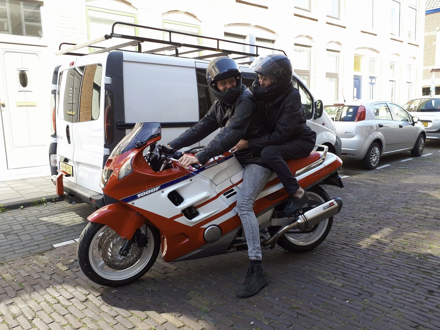 This is a picture of my on my modified Honda CBR1000F from 1991. With my grandma aged 85 on the back!