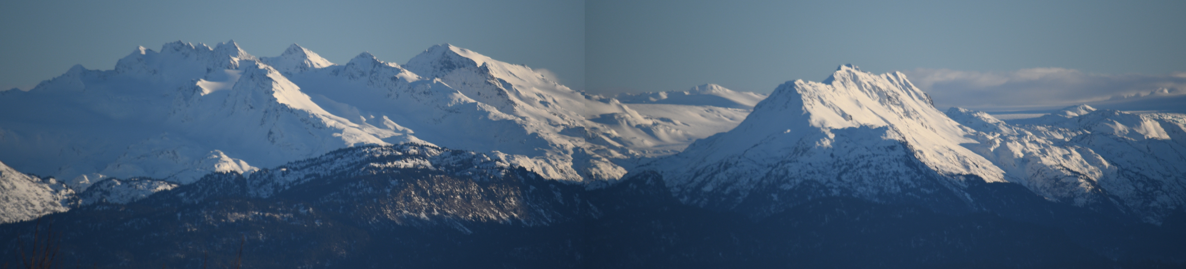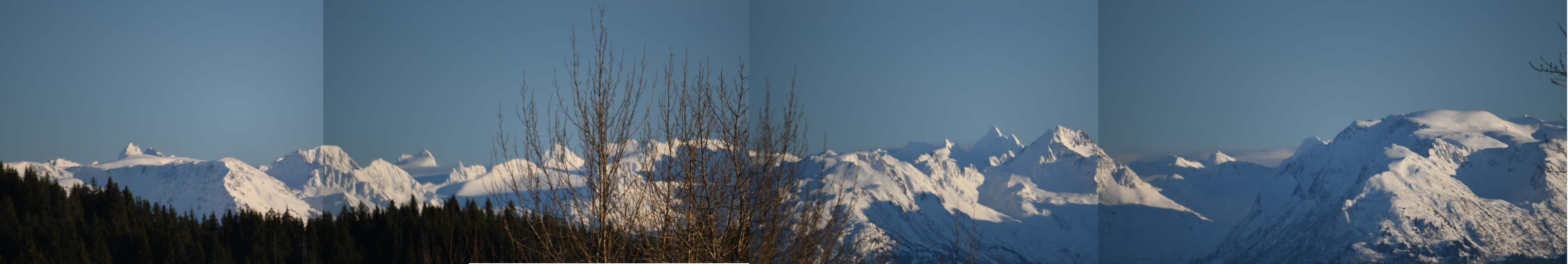 Last month Jan 18th was a pretty nice day. I need another nice day to go back to the Homer Hill Pull out. An overlook area of the Homer Spit, and, as you can see, has a beautiful view of the mountains. I did not overlap my photo's enough for my panoramic program to stitch them together, so I just used the paint program, I am not that good at the merging of images as you can see with the overlap lines.