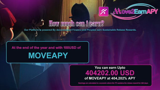 MOVEAPY holders can earn an annual compound interest rate of 404202% without having to move their tokens out of their wallet.