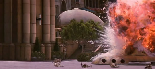 Also it has some of the best music in the movie. For the most part, imo, John Williams did not do a very good job with the score for the prequels. However, the soundtrack as the droid army marches toward the Gungans is pretty cool, and the way the sounds of the marching droids is in rhythm with the score is a nice touch. (They do it again in Episode 2.)