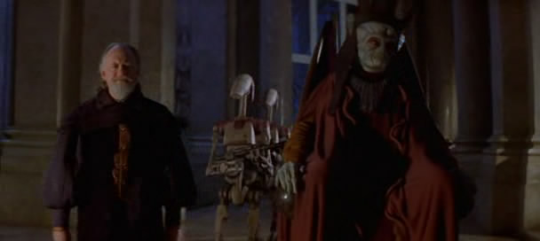 So now we see Palpatine in the flesh for the first time.