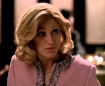 Carmela Soprano is the wife of Tony Soprano for the entirety of the series. She tends to be a nice person overall, leaving all the tough guy stuff to her husband. From time to time she is a bit conflicted about the morality of her husband's "business" (oficially trash dumping business and construction business, unoficially just about anything else). She initially did not know that Tony Soprano's shrink was actually a woman, a fact that brings some drama once known later on. For the most part she is a dedicated housewife, taking care of the family's house in New Jersey, making sure her two kids go to school, and cooking good meals (supposedly she cooks an amazing ziti - layers of baked pasta with cheese on it). Late in the series there is a brief breakup between her and Tony Soprano but things eventually work out again.