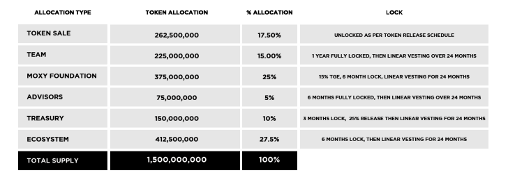 Moxy’s Linear Distribution TGE Model was designed to make it harder to aggregate/centralize token ownership. This preserves the ability for meaningful token market dynamics as Moxy Platform is designed to reward game deployment and player participation/skill and not focus on token aggregation.