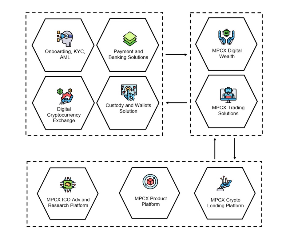 MPCX is a digital blockchain driven financial services platform. In the long-term aim is to aggregate all crypto financial services into one place. MPCX is designed to service entities’ and individual’s needs in the areas of digital wealth management, cryptocurrency exchange and trading, digital banking, crypto research and ICO promotion, and crypto lending.