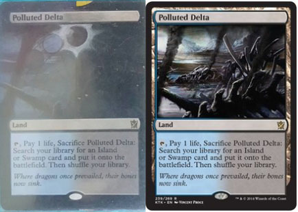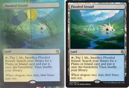 I received some fetch lands from a friend in Queensland the other day which have been altered in the famous 'Guru' style - a promotional series of cards designed by famous Magic: the Gathering artist, Terese Neilsen. I am not sure who did these alters but they are amazing to say the least. Below are my cards next to the originals to show how they've been changed.