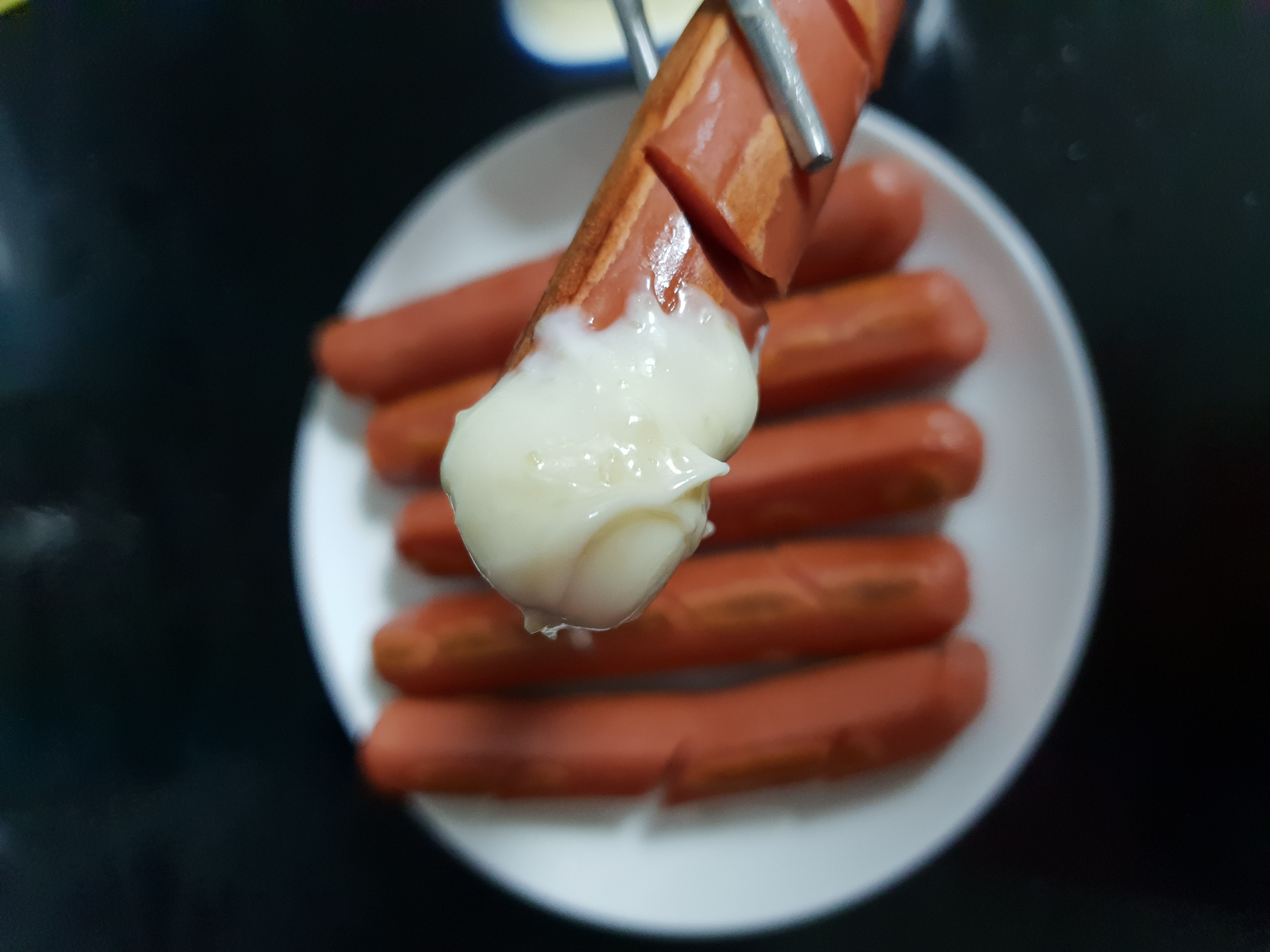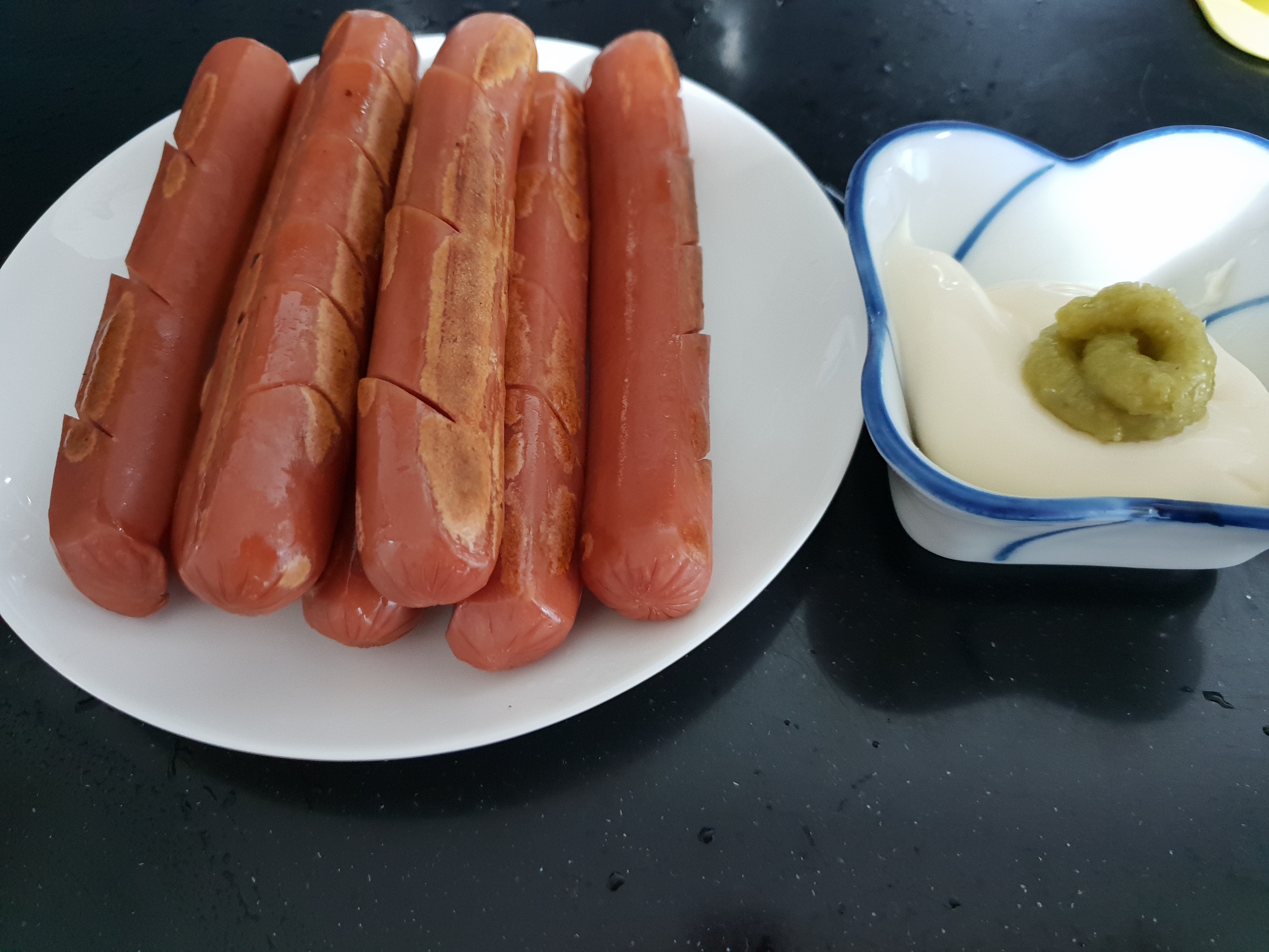 소시지를 먹을 때면 마요네즈와 고추냉이(와사비)를 섞어 소스를 만든답니다