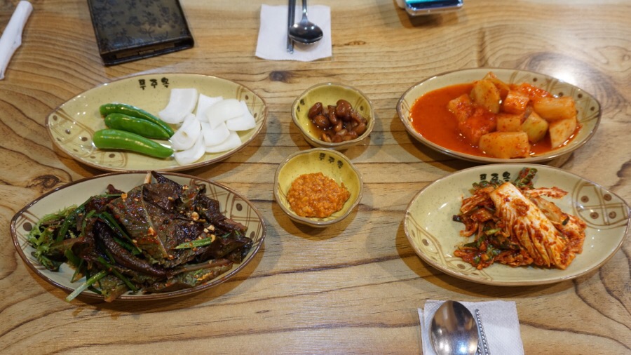 기본찬 : 깍두기, 겉절이, 상추무침, 생양파, 고추가 간단하게 나오고 호박식혜가 나와서 좋았어요! 달고 시원해서 후식으로 먹기에도 좋아요~