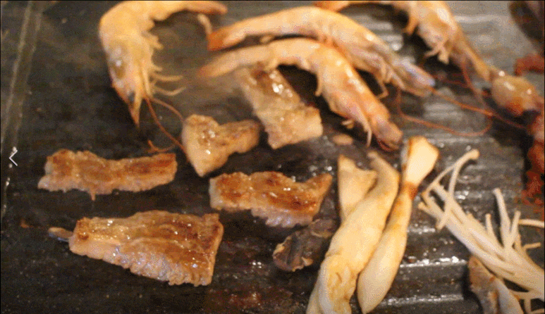 이렇게 조개구이가 살짝 느끼해질쯤 고기를 구어 먹어요 ^^