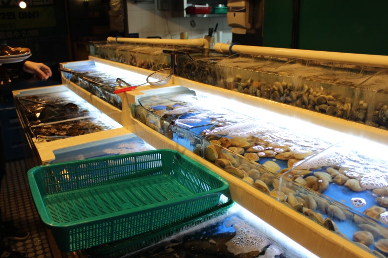 이렇게 수조가 오픈되어 있어서 먹고 싶은 만큼 골라가면 돼요!!