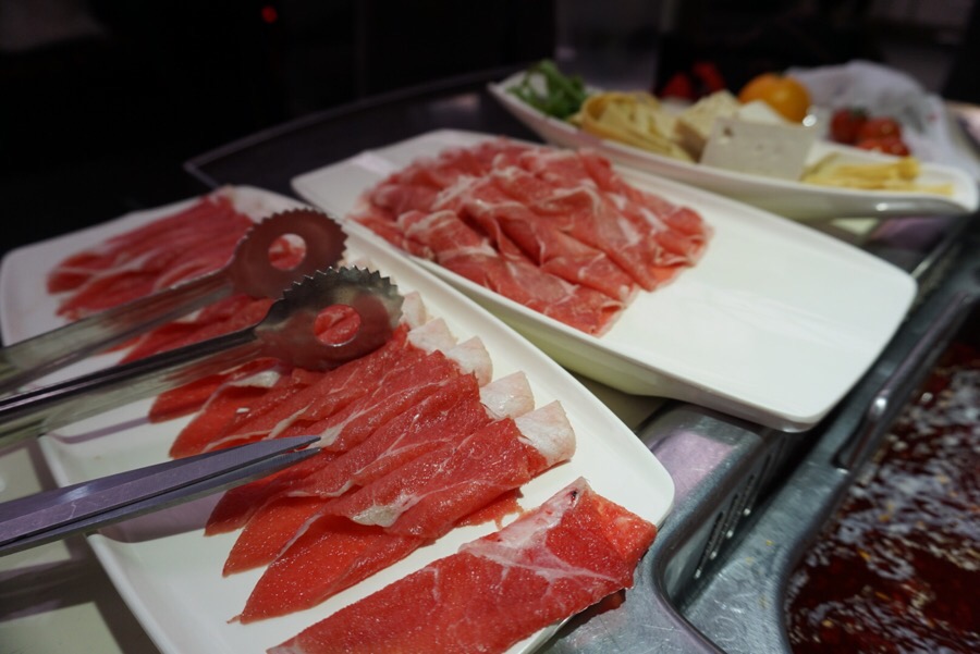 저희는 두가지 맛 탕을 선택해서 마라, 후추맛을 골랐고 소고기랑 두부, 여러가지 채소와 면을 주문했어요.