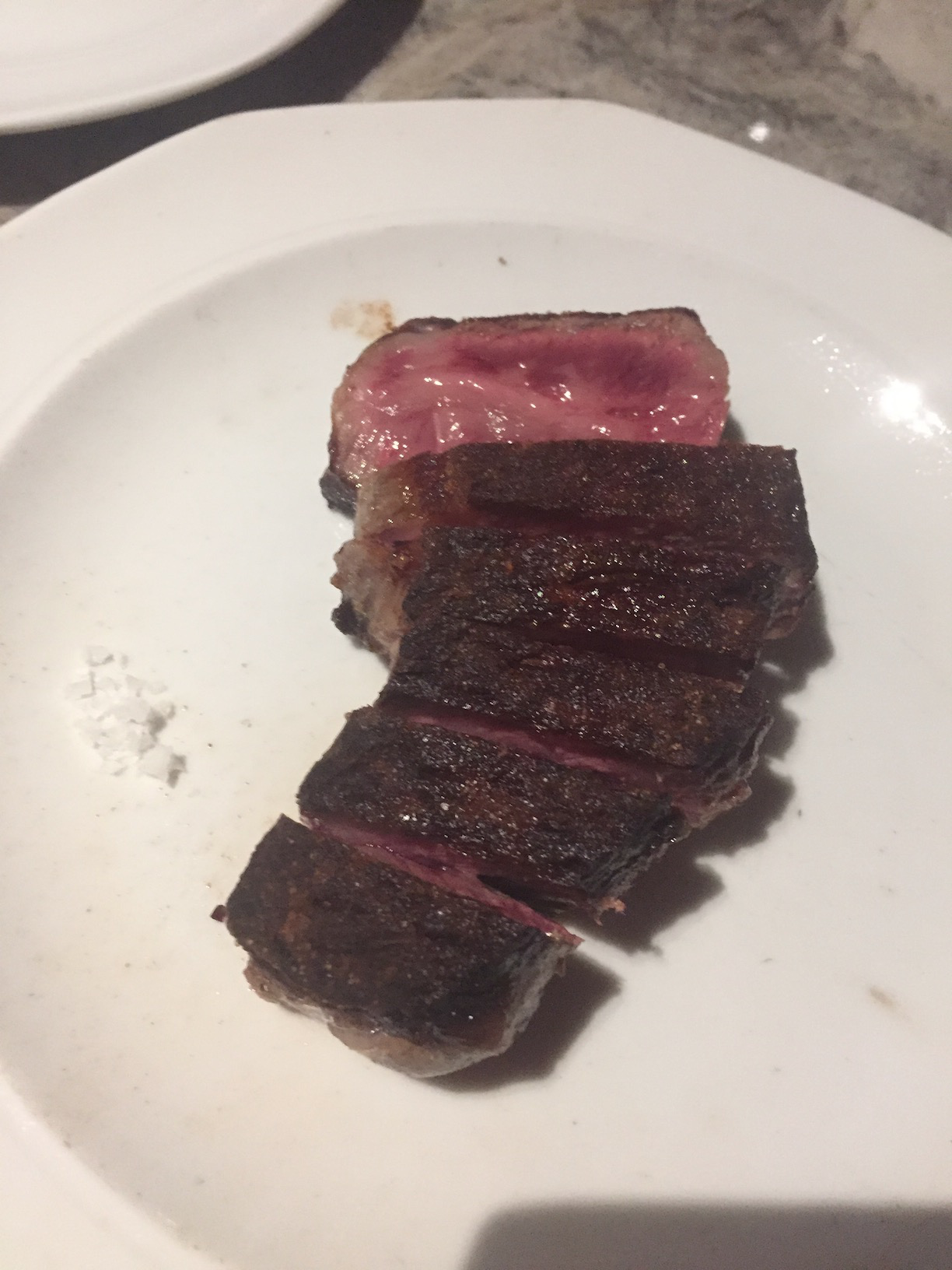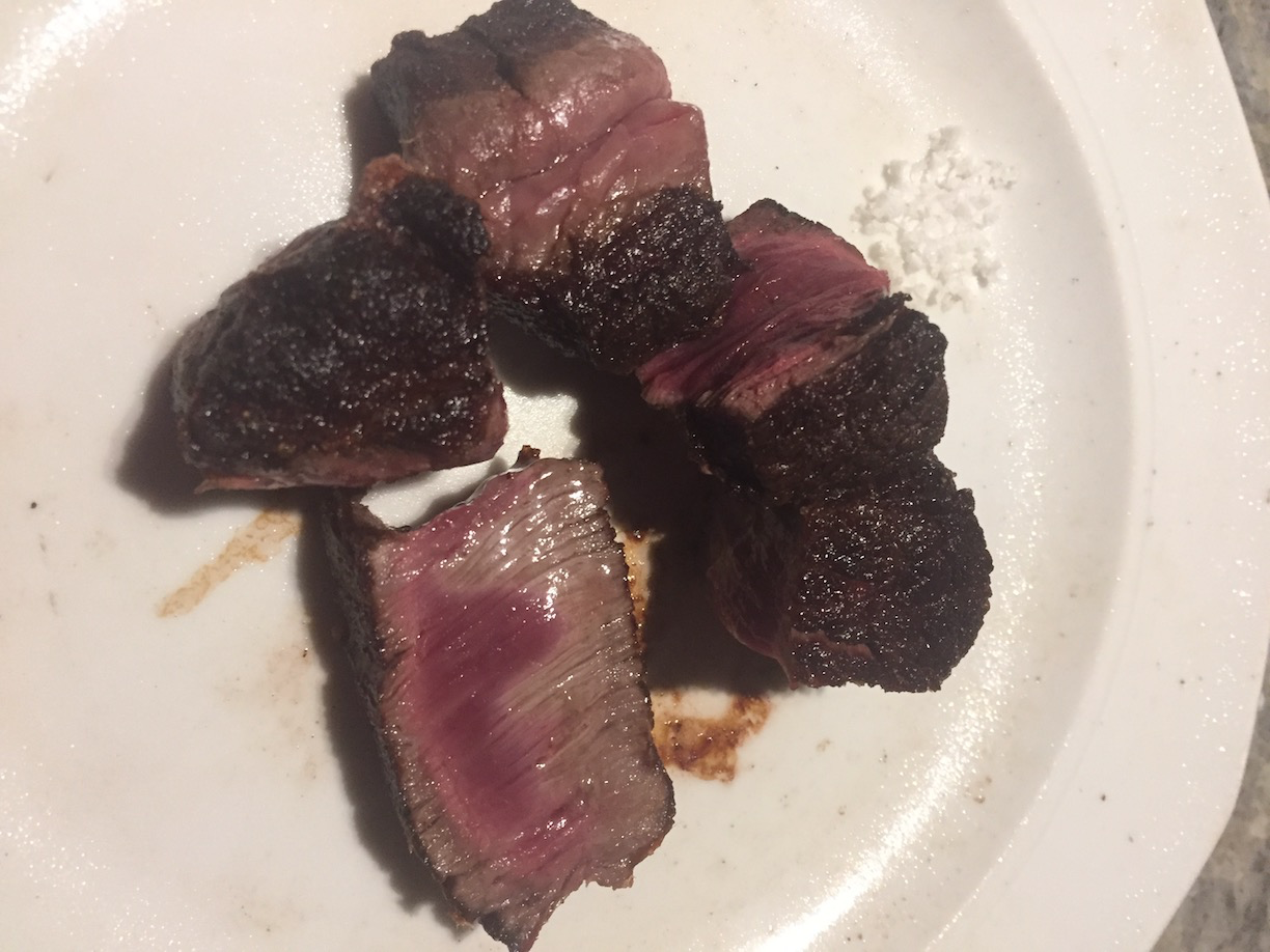 그리고 스테이크! 두둥. 정말 고깃덩이 200g과 소금 외엔 아무 것도 없었습니다. 아스파라거스 조가리도 없네요.