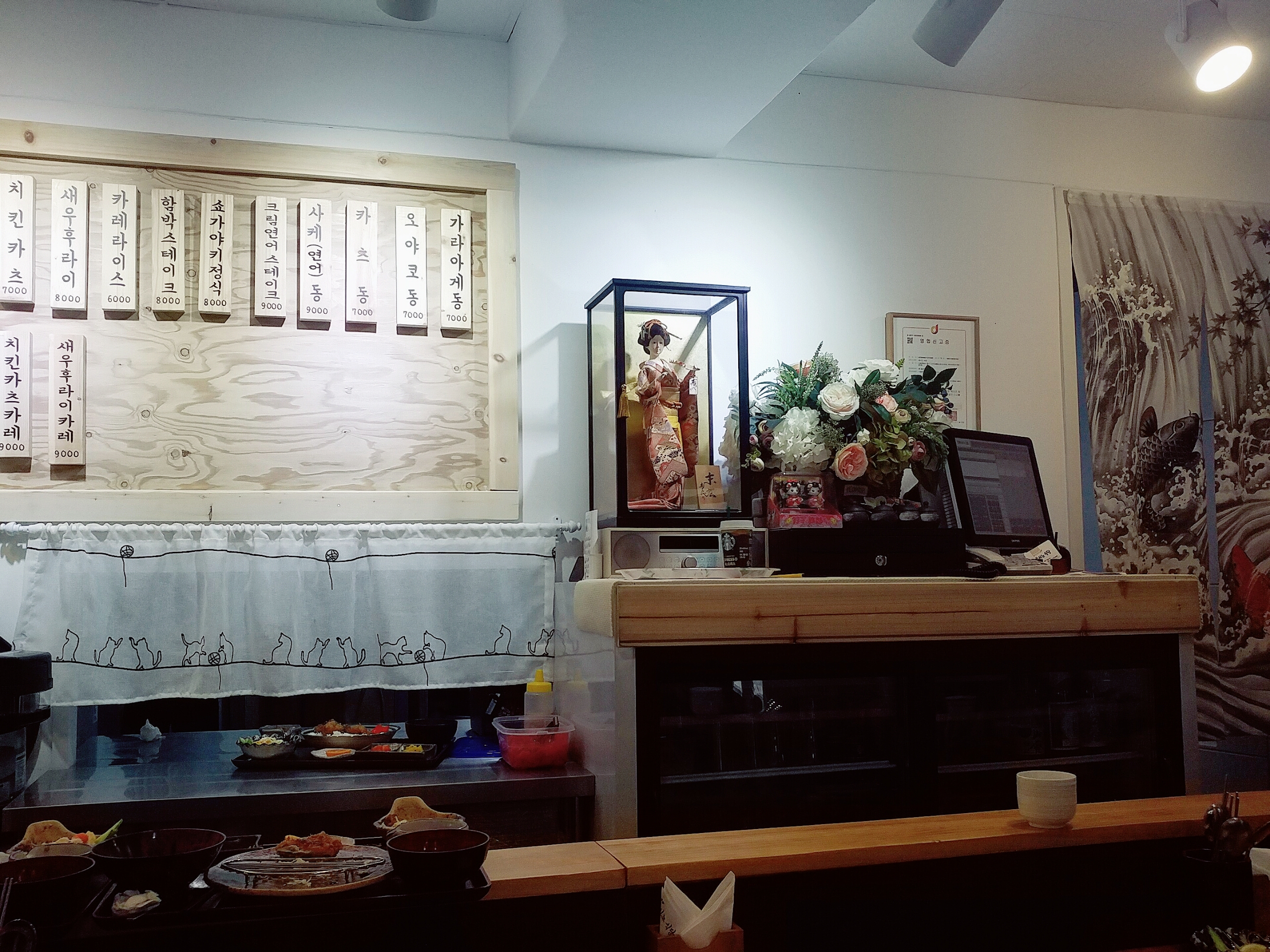 항상틀어져있어요 일본 전통 연주곡이나오면서 일식느낌을 더해주네요