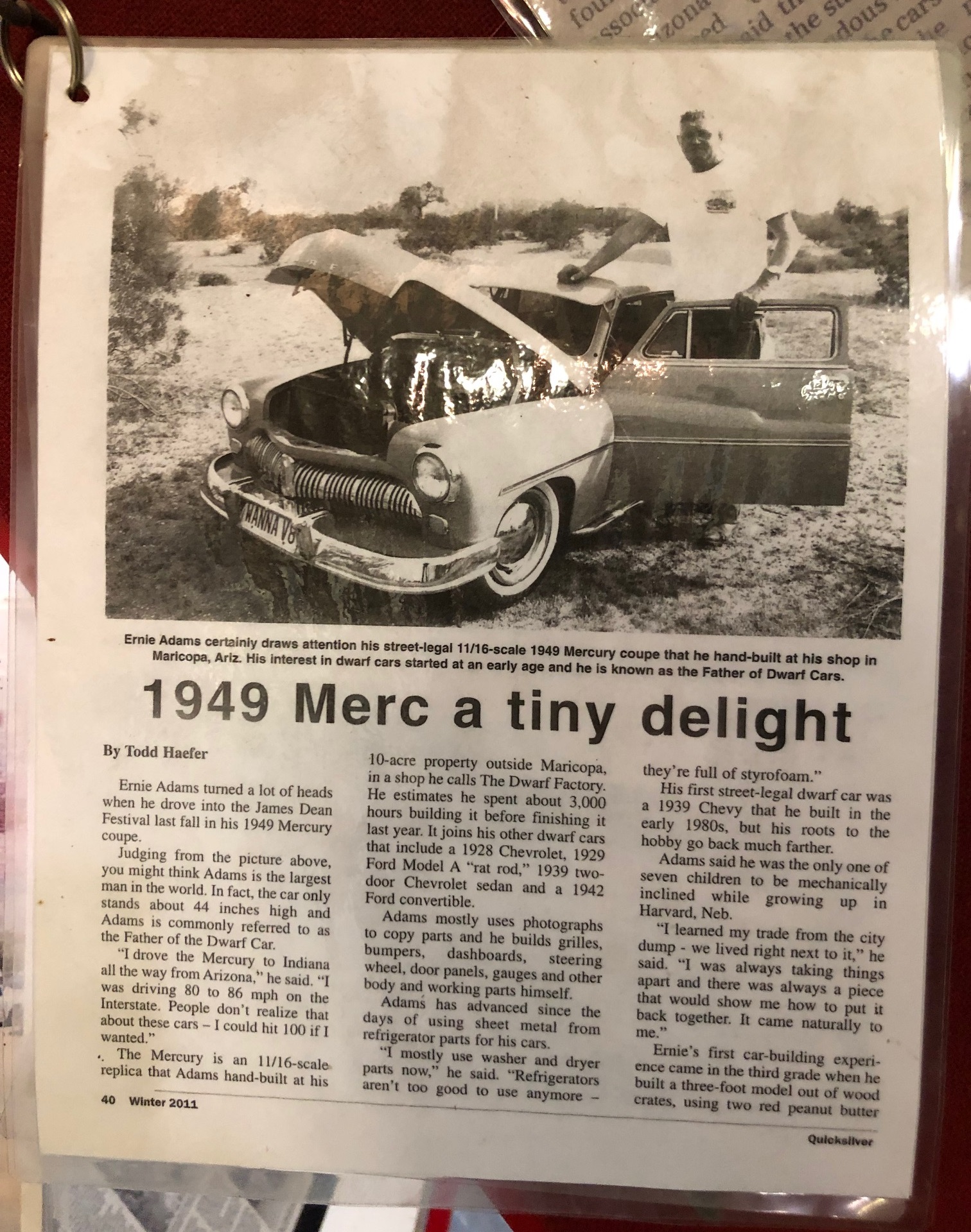 The Museum is free of charge. There is only a donation box. Ernie Adams (the builder-owner) also has a website https://www.dwarfcarpromotions.com/