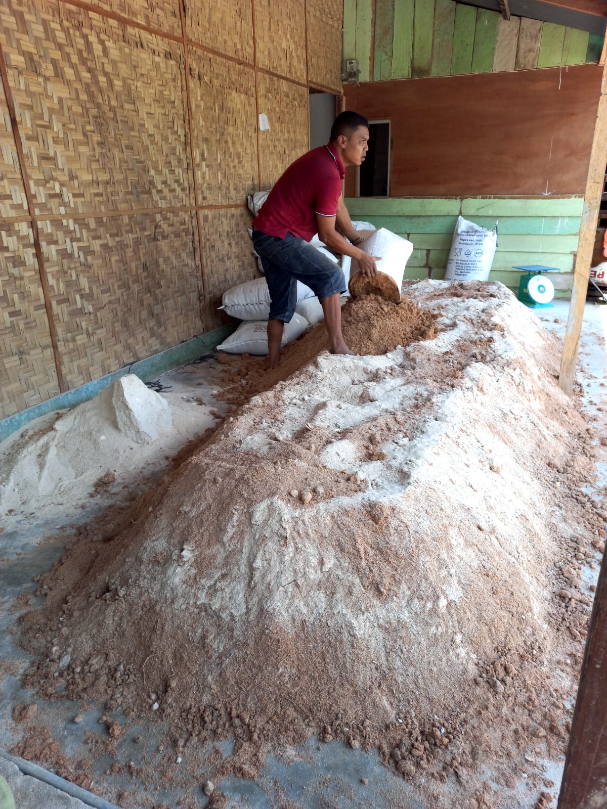 untuk gambar di atas jumlah bahan baku ( serbuk gergaji ) 1 ton jumlah bahan di atas untuk menghasilkan kira-kira 1000-1300 baglog, dimana saat pengukusan hanya bisa memuat maksimal 1000 baglog per Oven