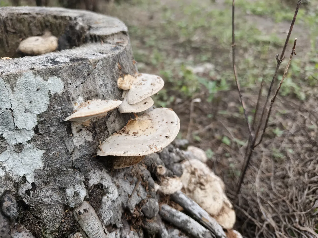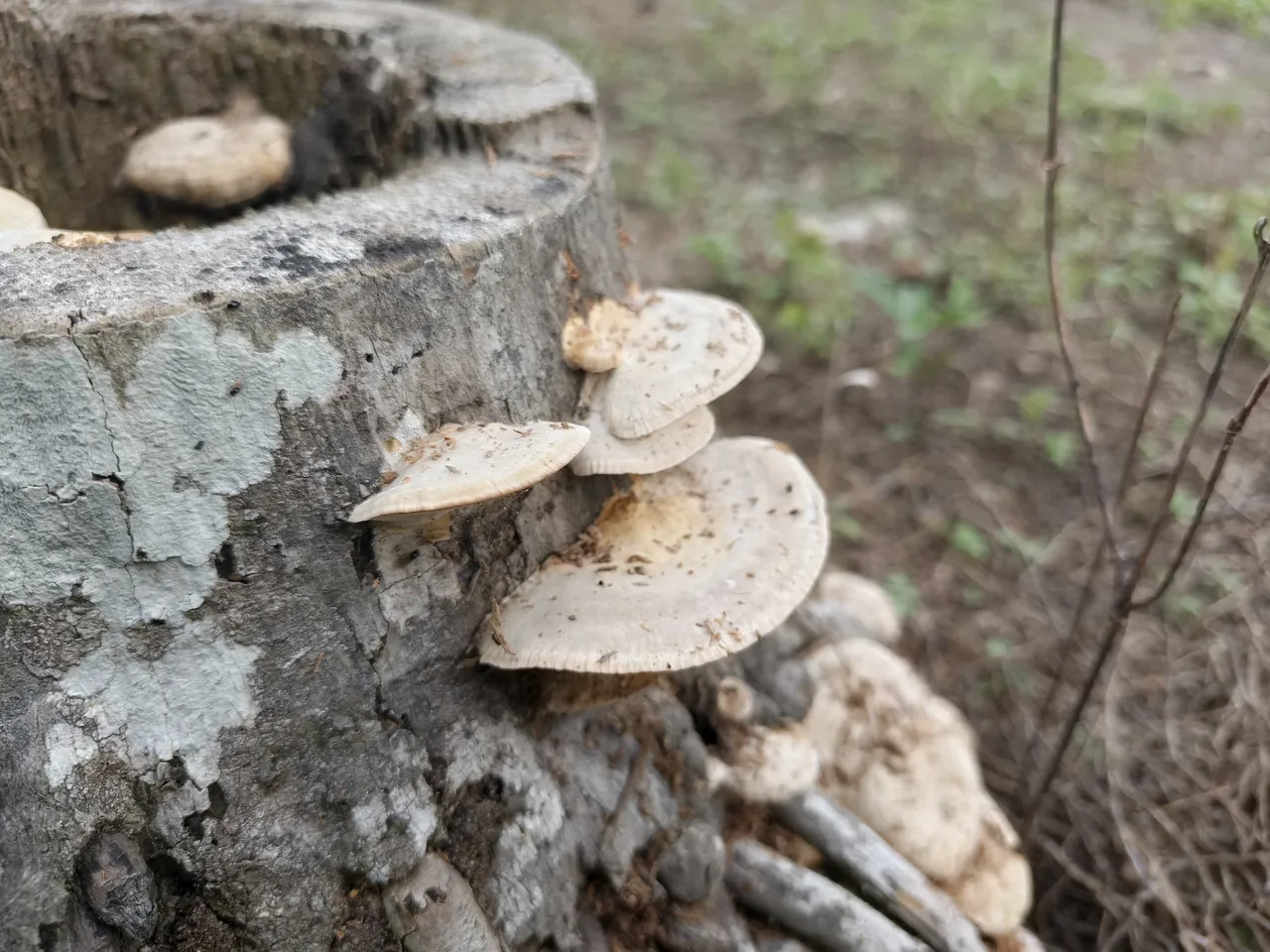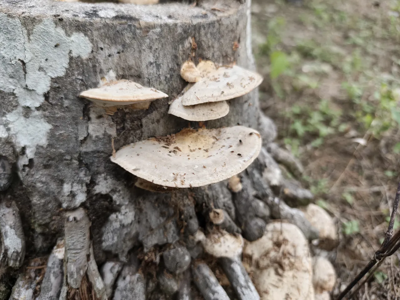 This time, I would like to share some pictures of mushrooms. It's been raining in my area for the past few days, but finding mushrooms in the wild is a bit difficult due to the recent rainy season. The mushrooms I found and share in this meeting grow independently of the rainy season, growing on a felled areca nut tree that is starting to rot. Their texture is a bit hard when I hold them, and they grow in groups, as I see.