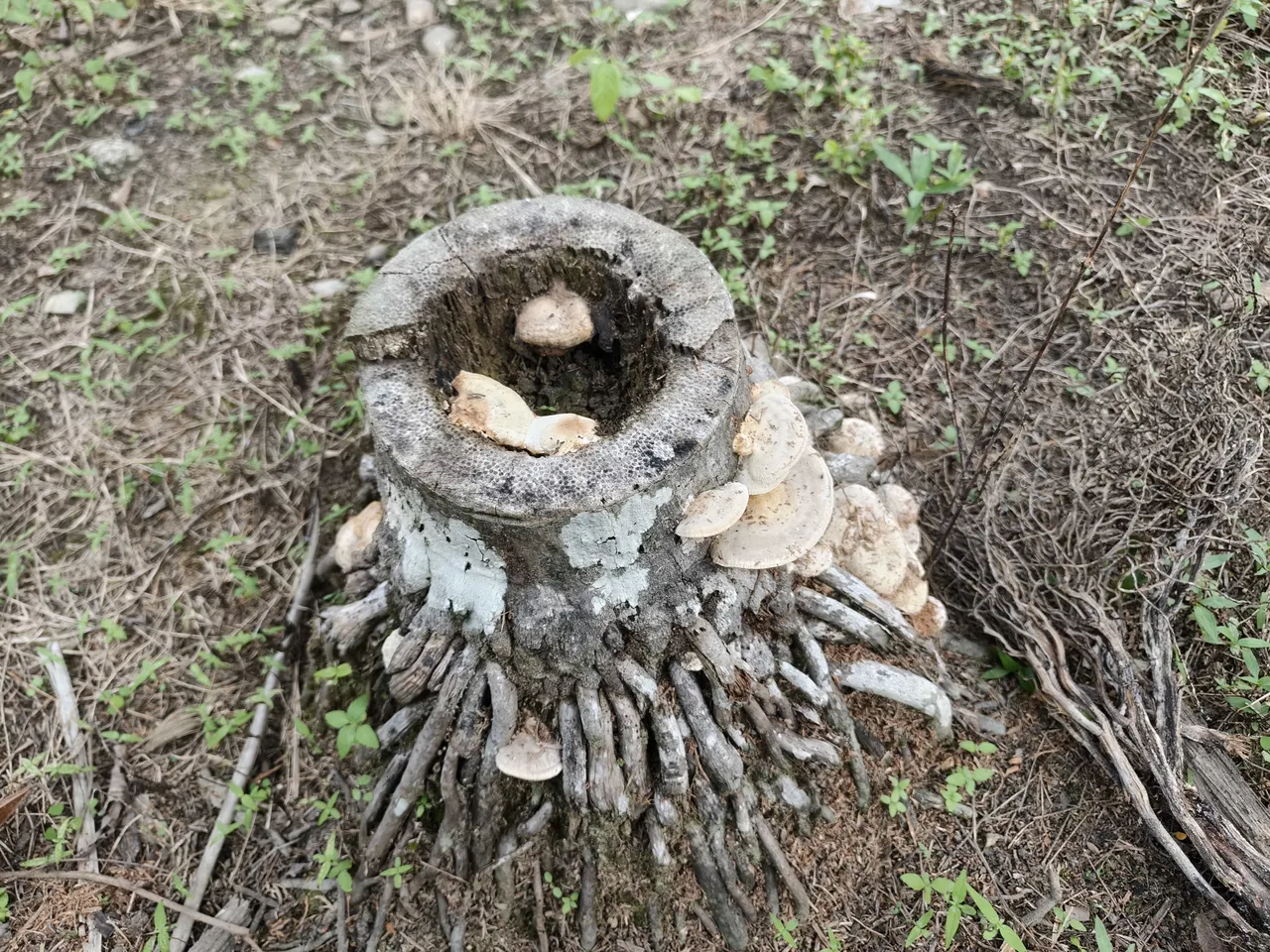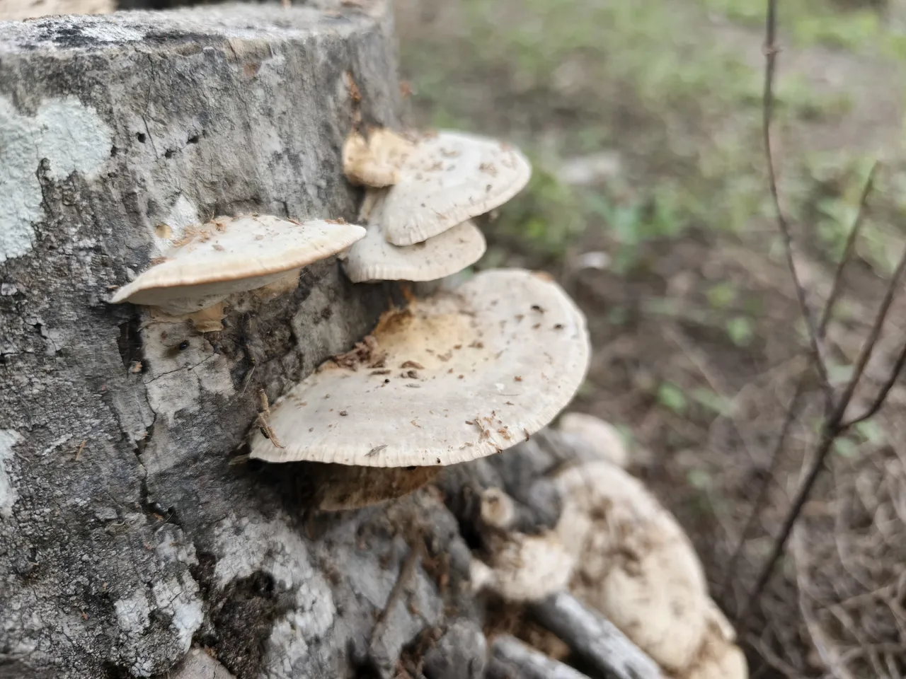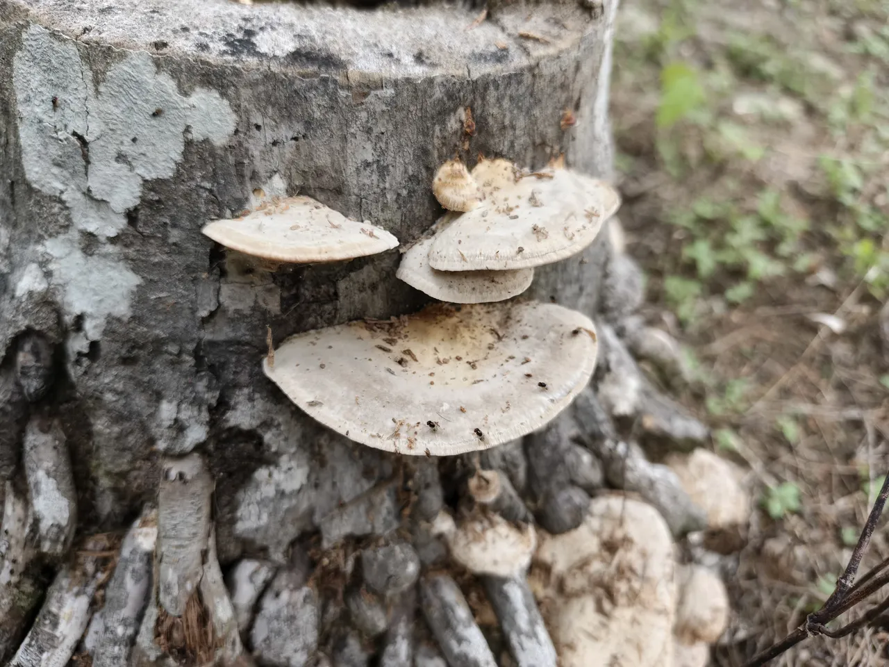 This time, I would like to share some pictures of mushrooms. It's been raining in my area for the past few days, but finding mushrooms in the wild is a bit difficult due to the recent rainy season. The mushrooms I found and share in this meeting grow independently of the rainy season, growing on a felled areca nut tree that is starting to rot. Their texture is a bit hard when I hold them, and they grow in groups, as I see.