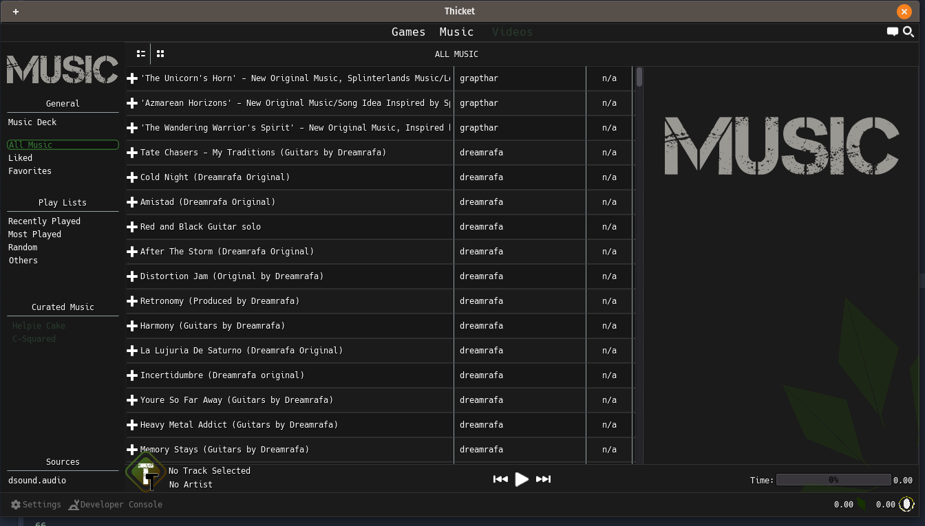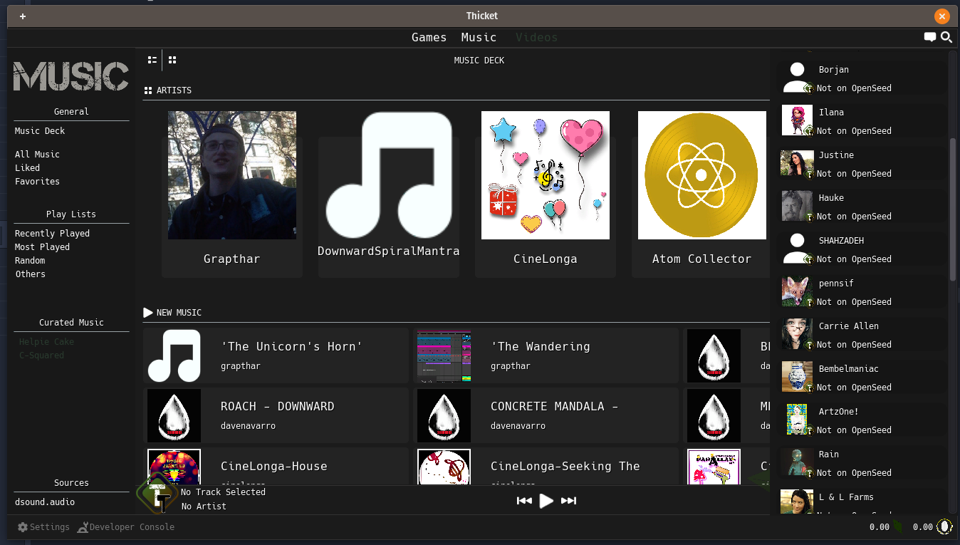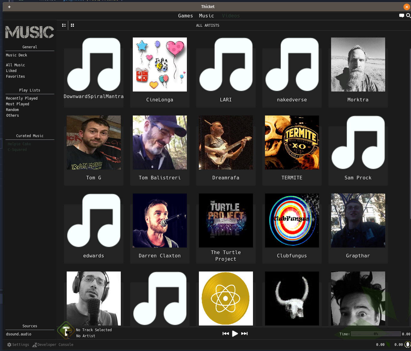 - Following the bottom row on the left hand side you have both Developer Console (might be renamed to Creator...Something) which will facilitate the upload and management of games and applications that are listed within Thicket (Comming soon hopefully)