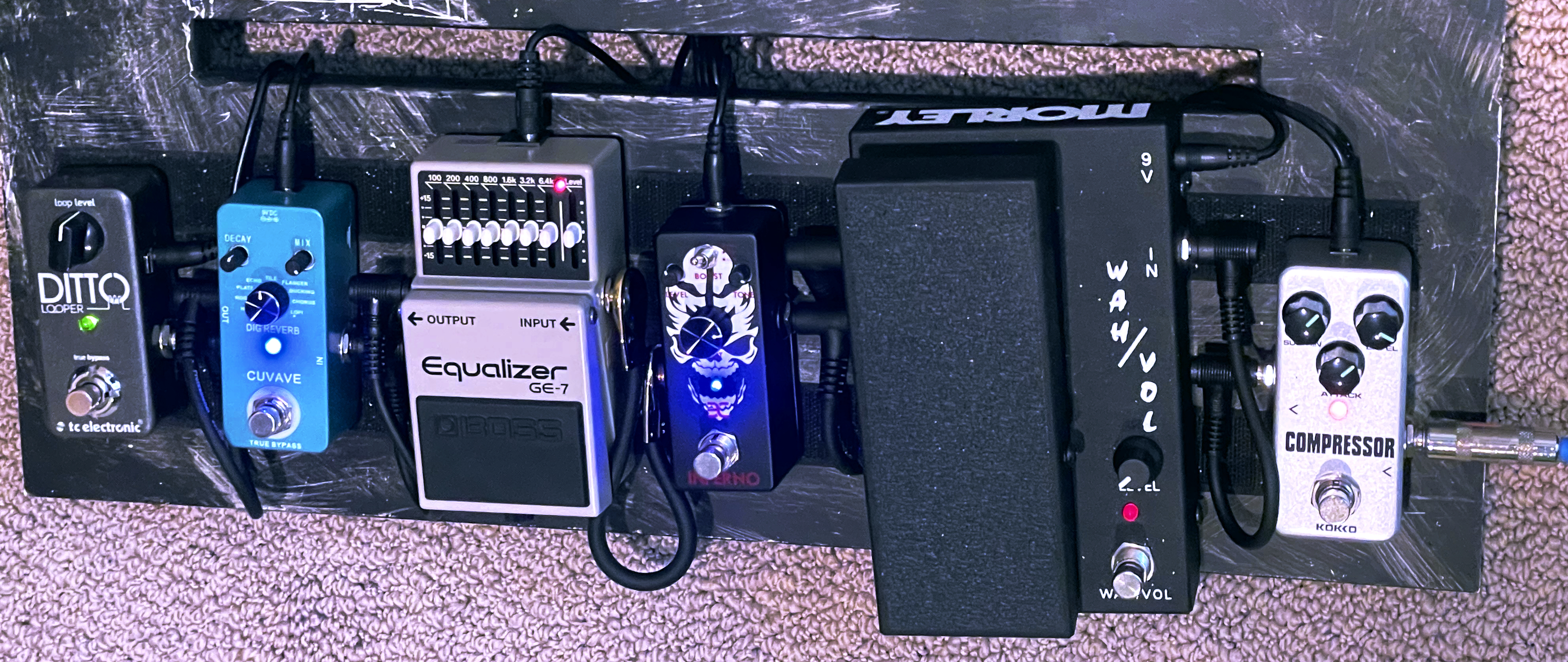 Compressor ~ Wah/Vol ~ Distortion ~ EQ ~ Reverb/Modulation ~ Looper