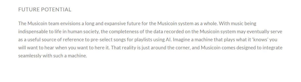 Wow! This sounds incredible. So you can mine coins or buy coins and then you can spend them on listening to music. And of course, everyone can also sell them for btc, cash, etc. Is that rght?