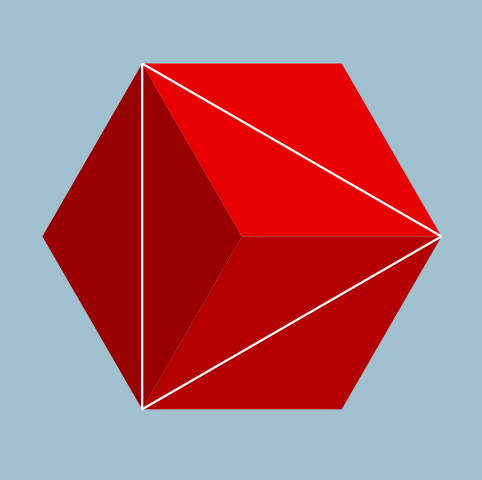 A Cube’s Vertex Figure. The shorthand for this figure is 4.4.4. Source: Wikipedia.