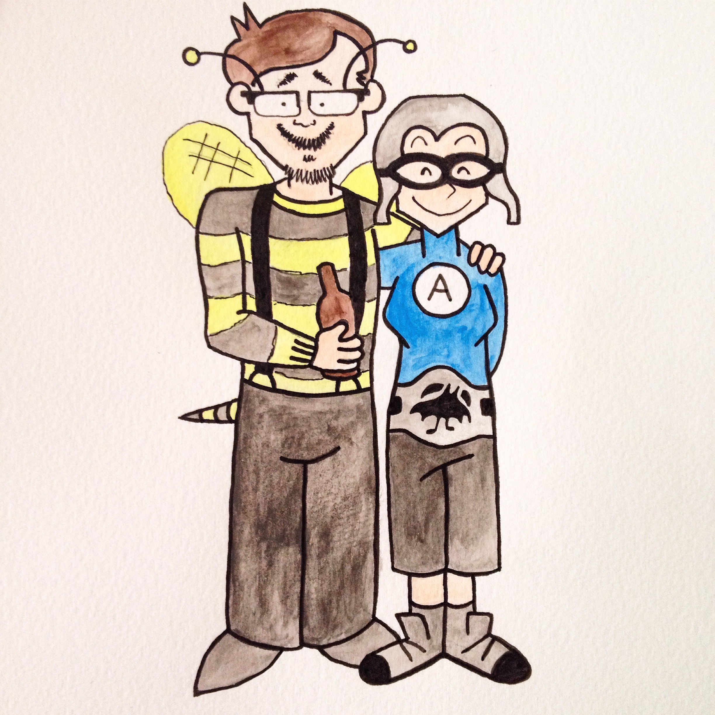 A cute drawing of us in above costumes.