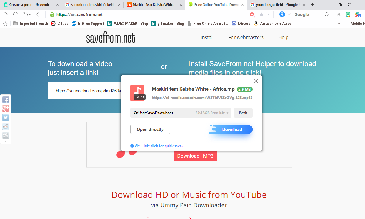 Whenever I see a Video/Audio I like to listen offline my first option is to click double s (SS) before the word youtube on the url section. For example a normal url looks likes this https://www.youtube.com/watch?v=PdoMz9E3UJc but with my double s it will look like this https://www.SSyoutube.com/watch?v=PdoMz9E3UJc.After putting the SS I will enter that page to the site where I can download the file.