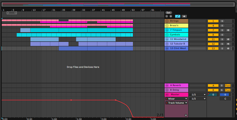 the last update was the snare part. I decided to do away with the double time rhythm after the break, and keep the same general, militaristic snare vibe going. Because the orchestral instruments all have slightly long attacks, I had to pull the entire snare line off-beat by like, 4 or 5 64ths of a beat, which normally is pretty difficult to make sound "real" but here it worked out surprisingly well. If you only saw the first or second update, there are also two new string and brass ensembles, which helped to build to break and break up the repetition of the constant legato parts.